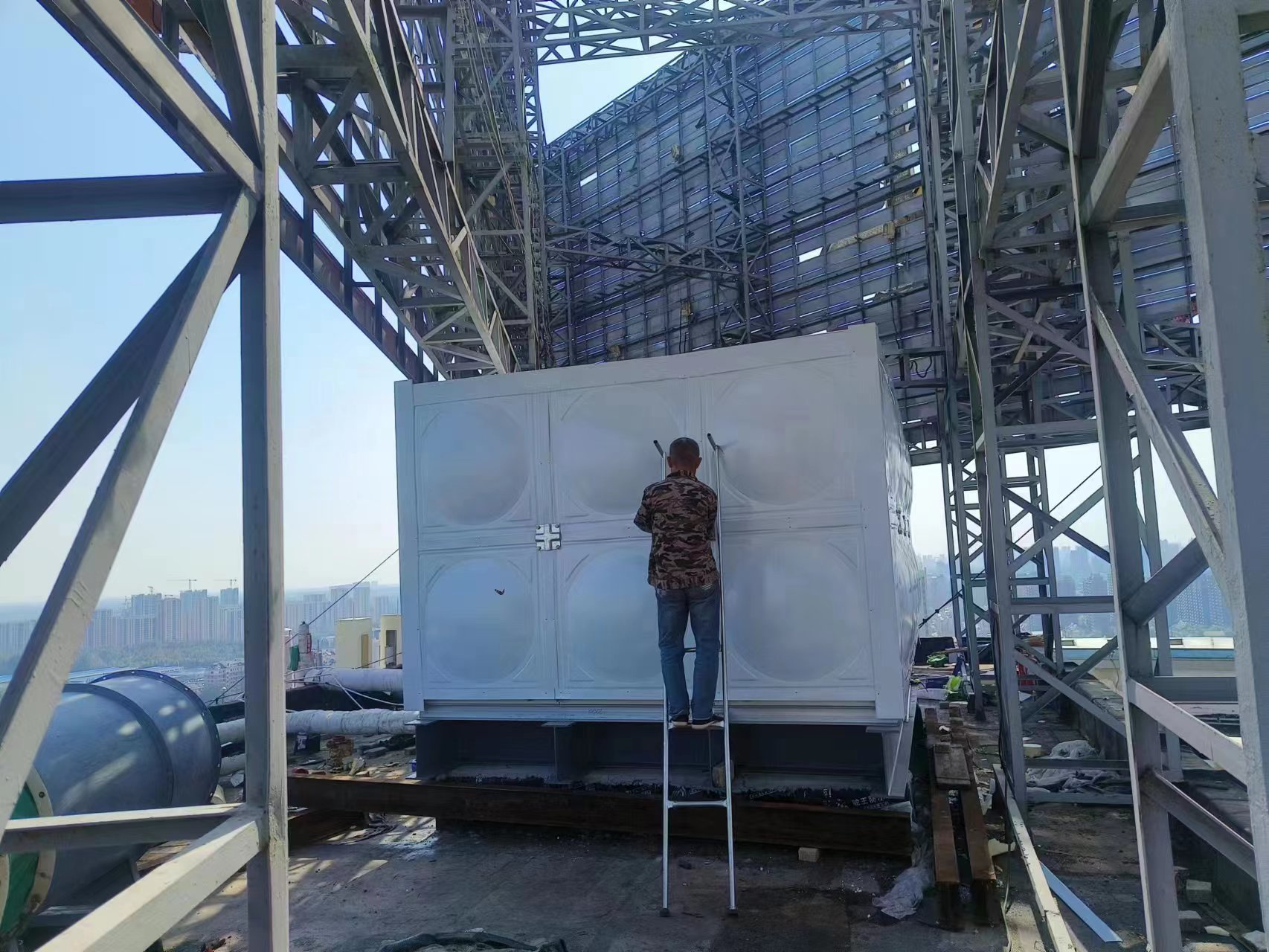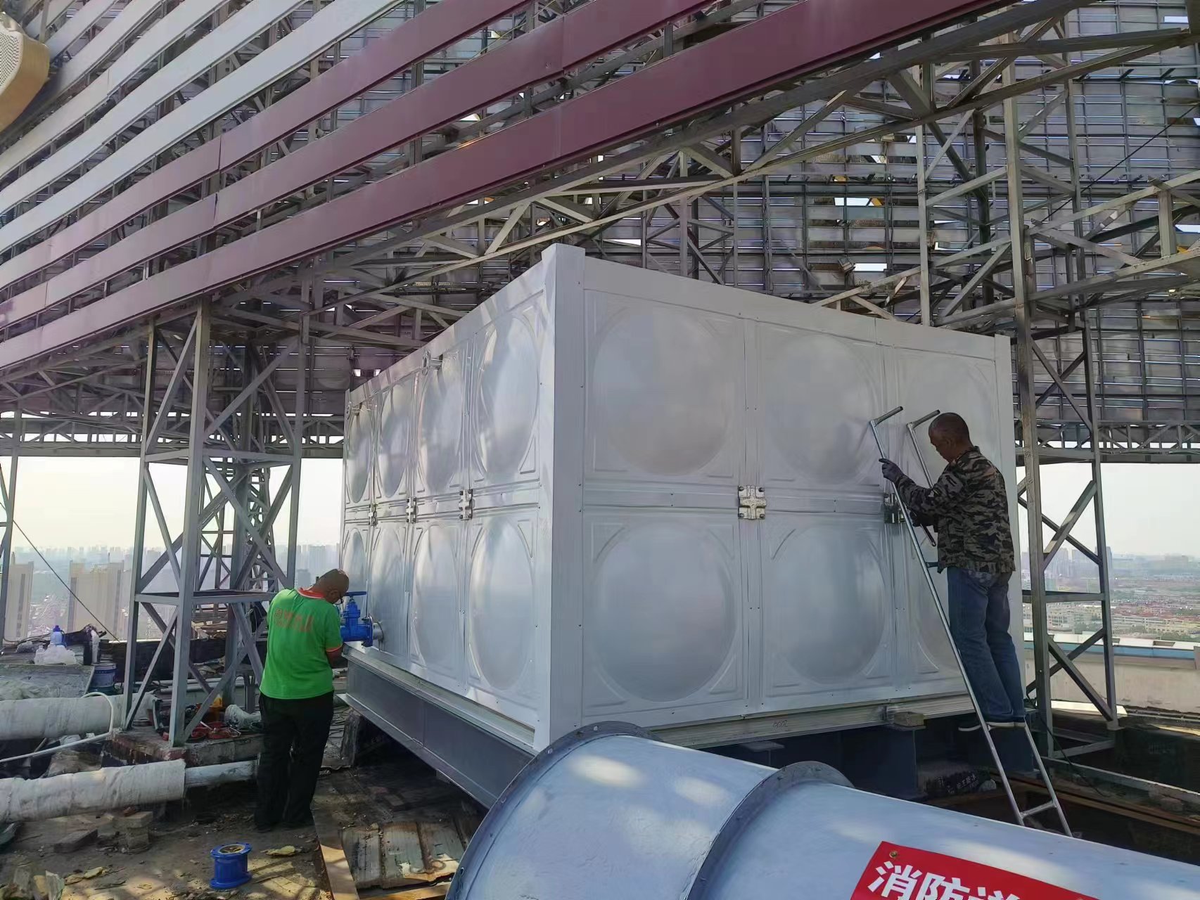德州德百物流批發(fā)城24立方玻璃鋼聚氨酯彩鋼板保溫水箱已經(jīng)安裝完畢,此次安裝的進(jìn)度也非???,在規(guī)定的時(shí)間內(nèi)完成了安裝和試水,得到了客戶的認(rèn)可。您的認(rèn)可就是對(duì)我們鼓勵(lì)。