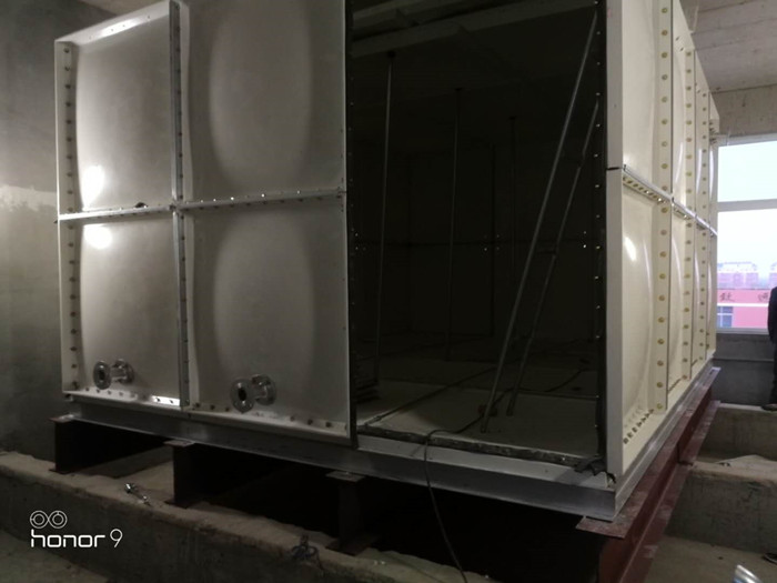 玻璃鋼橡塑保溫水箱條形基礎(chǔ)上又安放了一層工字鋼(根據(jù)自己的實(shí)際要求添加),焊接完槽鋼底座后依次把水箱底板擺放在槽鋼上。